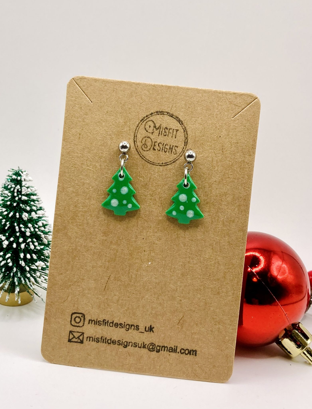 Christmas tree drop earrings. These are approximately a 21mm drop.