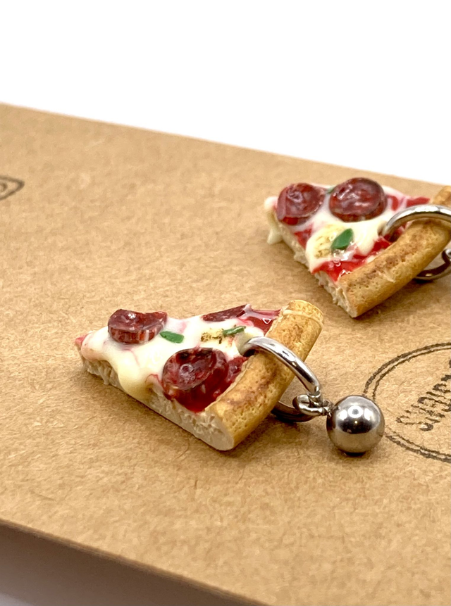 Pepperoni pizza drop earrings.